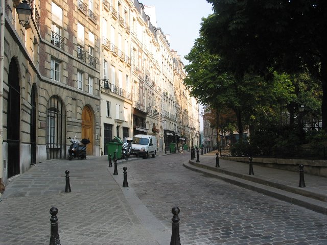 朝のパリの街角です。早いので人がいない。