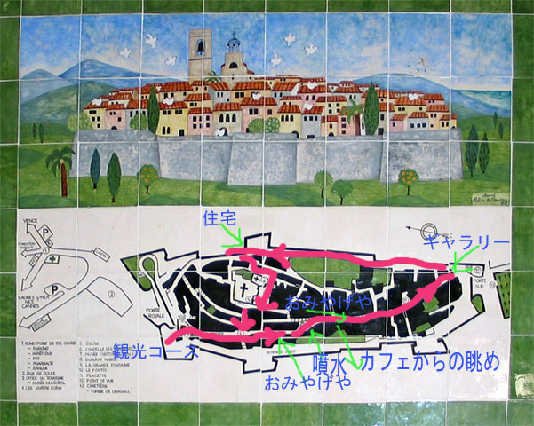 サン・ポールの地図と歩いたルートをマークしました。
