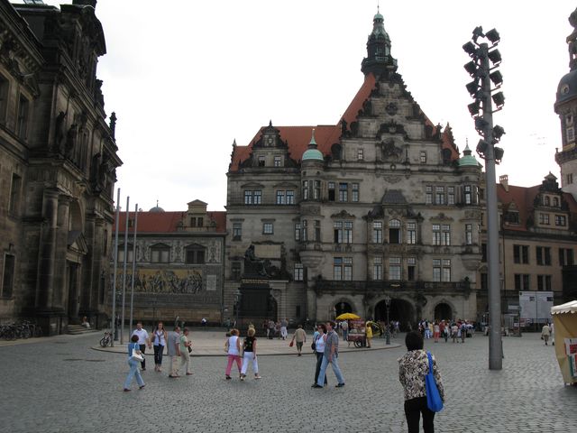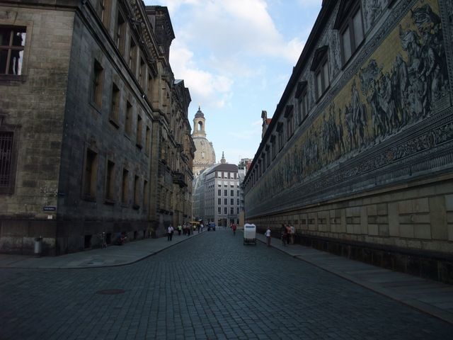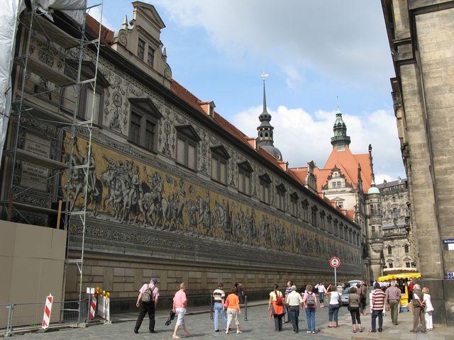 ドレスデン城壁のマイセン磁器のタイル絵君主の行進です。戦災にもこわれず残りました。