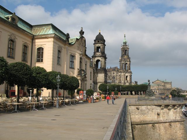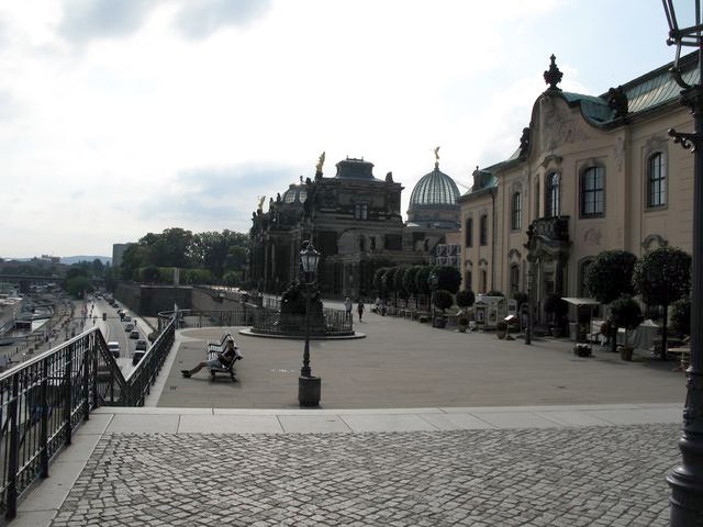 ブリュールのテラスにて 遠くに宮廷カトリック教会が見えます。