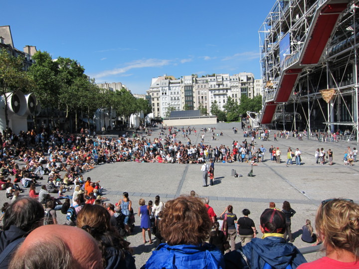 ポンピドーセンタ−近くのサン・ドニー通りの広場風景