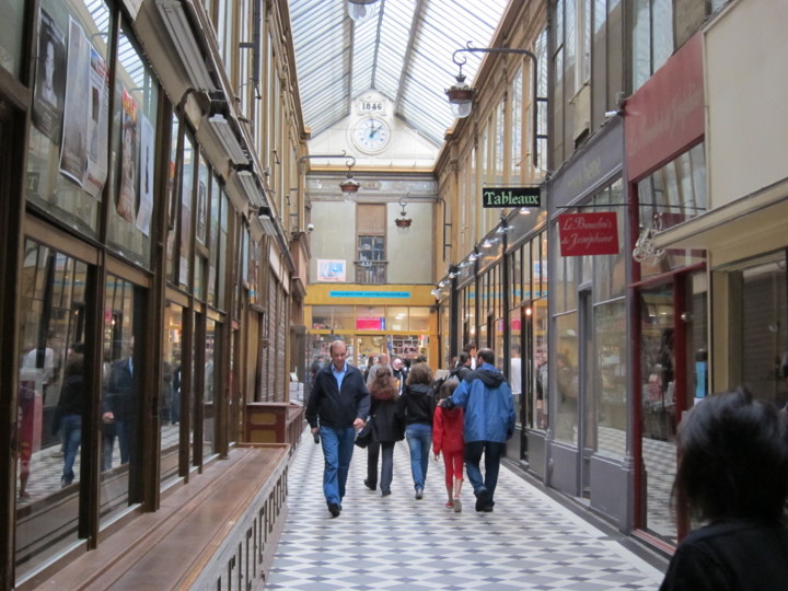 パサージュは18世紀後半にできたガラス屋根のアーケイド街です。しゃれた小物やアンティーク、お菓子屋さんなどが