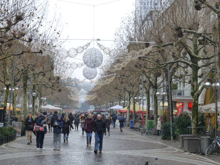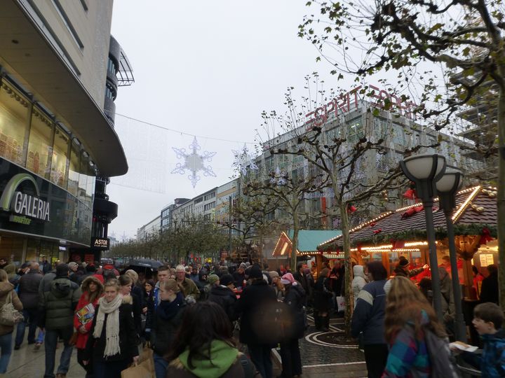 カタリネン教会前から続くツァイル クリスマス飾りで飾られていて、その中を多くの買い物客で賑わっていました。