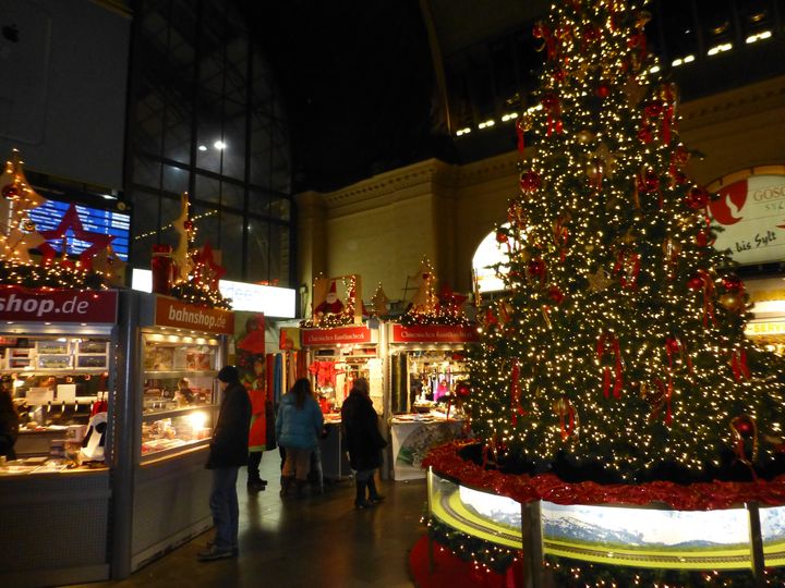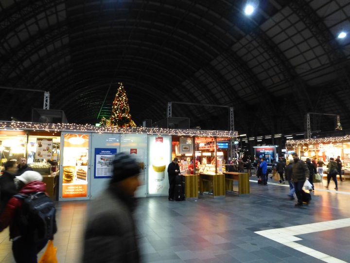 フランクフルト中央駅舎内です。クリスマスの飾り付けがされていました。