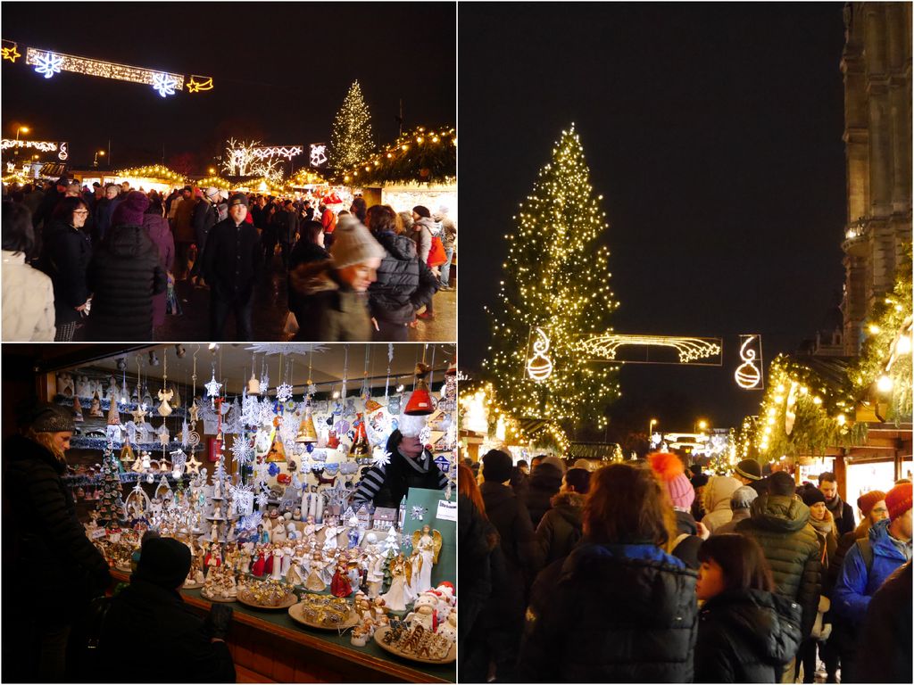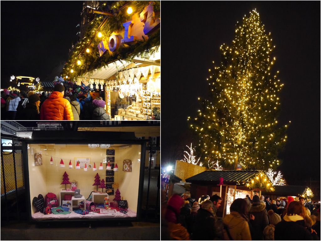 のクリスマスマーケットへ。 電飾がきれい。 お店も多数。