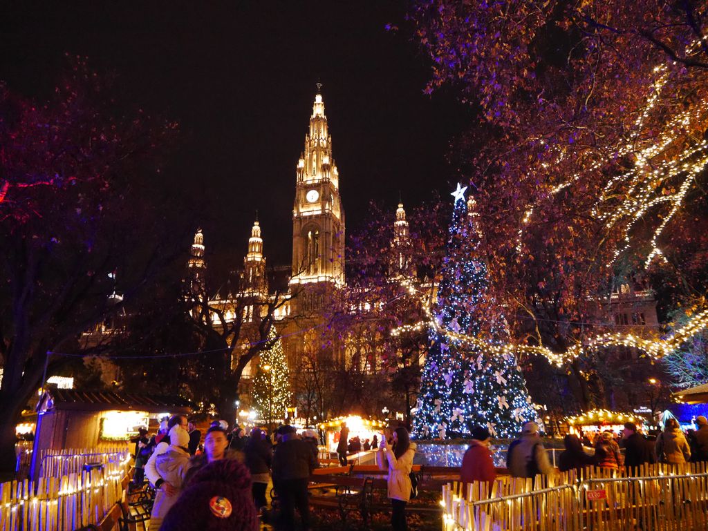 グラーベン グルントナー通り観光を終え、6時過ぎカールスプラッツ駅地下に集まり、再び団体行動へ。 ウィーン一番といわれる市庁舎前 の