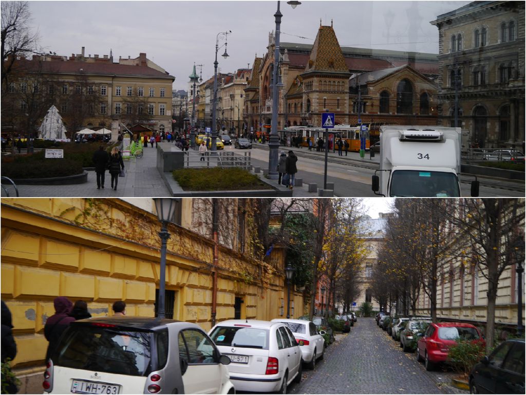 ブタ地区とペスト得を結ぶ橋の周りは大渋滞。 くさり橋をあきらめてエリゼベート橋でペスト地区へ。移動中に見た景色は中央市場。そして