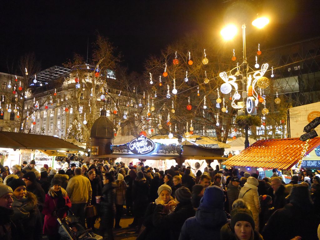 漁夫の砦 地区からくさり橋を渡り ペスト地区で開かれているクリスマスマーケットへ。 20分の見学。 交通渋滞と迷子捜し時間で見物時間が短縮。