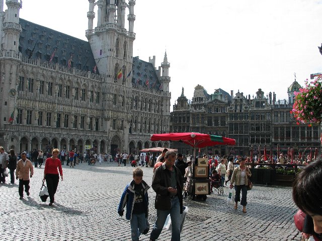 グランプラスの広場風景 背景は市庁舎です。