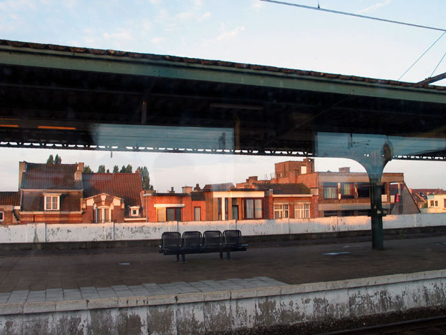 この写真はブリュージェからの在来線列車から見た途中の駅の風景。