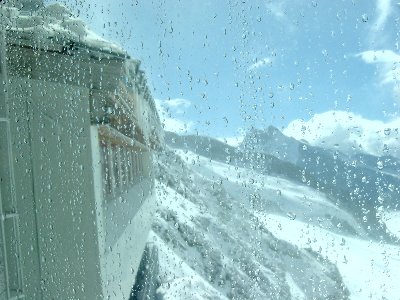 翌朝はまだ雨が降っていました。その中、登山電車でユングフラウヨッホ(3454m)迄行き、氷河と