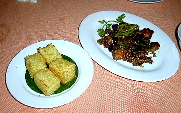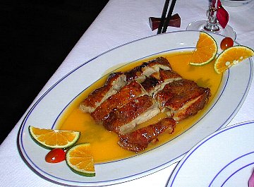 空芯采のニンニク炒めです。 ローストダックのオレンジソースです。