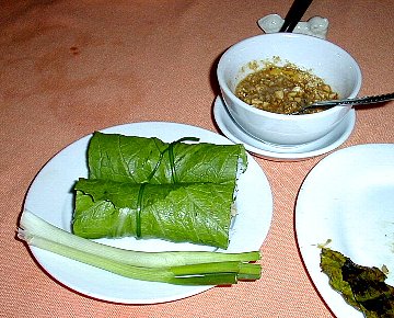 鶏の傷め料理です。 野菜の葉に包んだものをそのままつけていただきます。