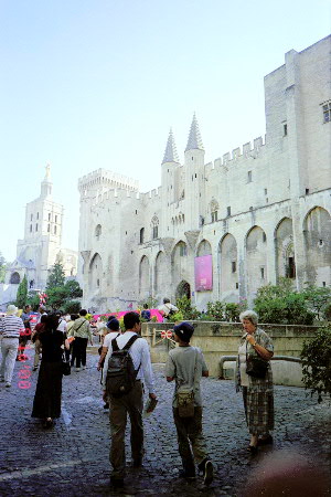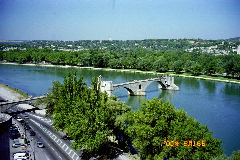 ローヌ川の対岸から法王庁と中世のアヴィニオン橋を眺めました。