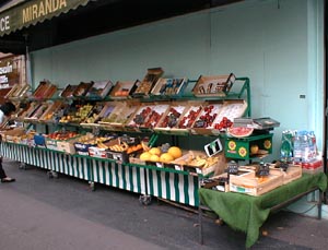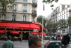 行きのJALの翼 パリにつきホテルまでの道すがらに見たサッカー場 ワールドカップでは、大騒ぎのようでした。 こちらではロータリーが多いですね。 ホテル前の通り Hotel近くの果物にて 下町の裏路地 下町のカフェ まずは無事つきました。 次へ。