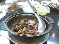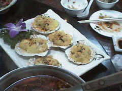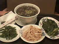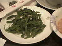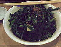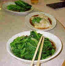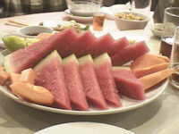 一皿 デザートとしてのスイカとマンゴはあります。 他に一皿 肉ヲベースに包んで焼いたものが一つ、これはうまかった。 他に、帰り道で空港でのレストランで食べたしなちく料理と つるくさの青菜料理と他です。この青菜料理うまいです。 ビールに最適。