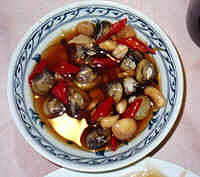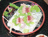 しじみ料理(醤油付) 刺身です。(わさびがでかい) サラダ