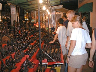 泊まったホテルの通りには夜市は毎晩開かれています。少数民族の方や ヨーロッバからの観光客、日本からの観光客と奥地からの民芸品等で にぎわっています。ともかくも珍しい品がいっぱいで安いのです。 また行きたいなと思いました。 戻る。